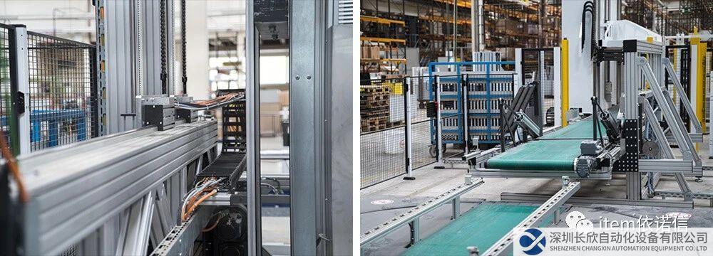 接下來,文件柜來到緩沖站,到達(dá)混合裝配系統(tǒng)的中央站。在該站點(diǎn),抓手系統(tǒng)拿起文件柜,線性龍門架將文件柜旋轉(zhuǎn) 90°。最后,手工裝配工作開始。在這個(gè)過程中,系統(tǒng)經(jīng)過特殊設(shè)計(jì),符合人體工學(xué),因此可以減輕員工的壓力。需要安裝的文件柜門擺放在系統(tǒng)前面的工作臺(tái)上,員工只需打開合頁即可安裝。文件柜再次旋轉(zhuǎn)后,第二扇門和底座就可以手動(dòng)安裝,完成后,文件柜會(huì)自動(dòng)下降。最后,完全組裝好的文件柜在輸送帶上繼續(xù)向前,進(jìn)入下一個(gè)站點(diǎn)。2、混合裝配系統(tǒng) & item 線性技術(shù),碰撞出不一樣的火花在混合裝配系統(tǒng)的中央站移動(dòng)文件柜時(shí),STiMA 使用了模塊化設(shè)計(jì)的 item 線性系統(tǒng)和另一家制造商提供的傳動(dòng)技術(shù)。大多數(shù)情況下,我們都可以輕松地將 item 線性技術(shù)與來自第三方的傳動(dòng)技術(shù)相連接并進(jìn)行調(diào)試,這是因?yàn)?item 的零部件,如傳動(dòng)組件、滑輪和軸,均采用通用型設(shè)計(jì),可以鉆孔或切割成所需的尺寸。 基礎(chǔ) - 帶鏈條傳動(dòng)裝置的線性裝置 LRE 8D14,確保更高的動(dòng)力傳輸抓手 - 線性裝置 LRE 8 D25,具有堅(jiān)固的滑動(dòng)元件和穩(wěn)定的鋼軸滑動(dòng)架和滾輪導(dǎo)軌 - item 模塊化裝配組件系統(tǒng),可以根據(jù)需求隨時(shí)調(diào)整零部件,比如長(zhǎng)度、寬度或軸承間距升降過程 - item 線性模組和滑動(dòng)架的有機(jī)組合,讓直立狀態(tài)的文件柜實(shí)現(xiàn)升降 視頻演示了全部過程 ▼